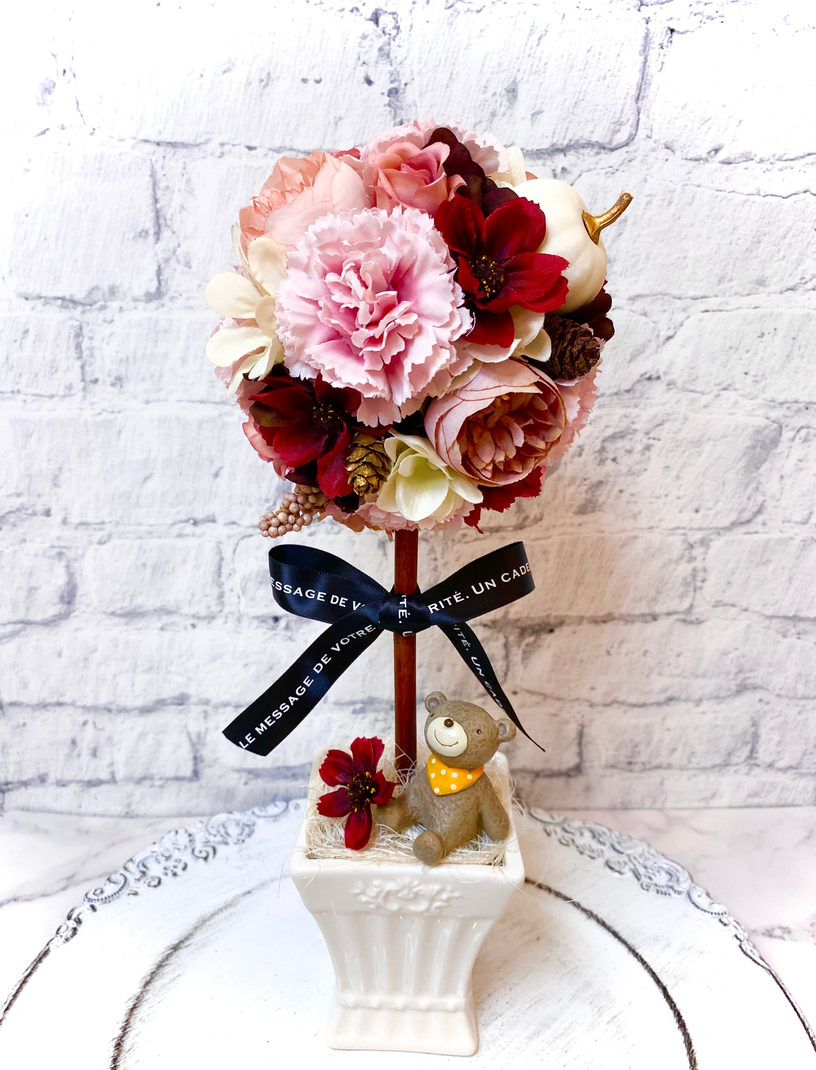 くまがキュート❤︎秋のインテリア・ギフトに最適♪秋のトピアリー*秋桜コスモスとくま*