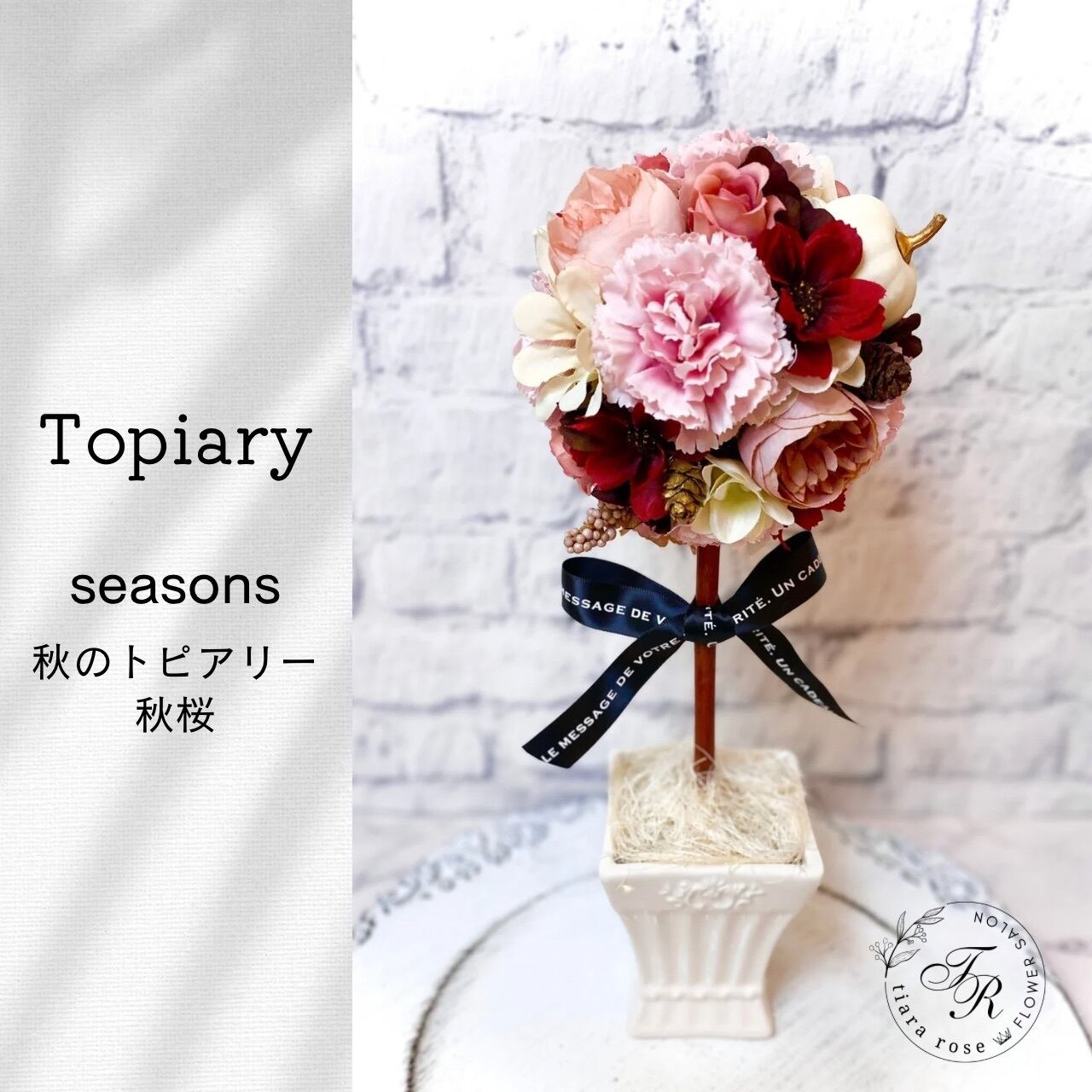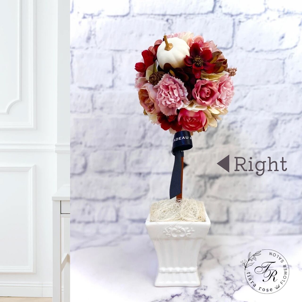 #秋トピアリー #コスモス #カーネーション #かぼちゃ #ミニバラ #ハロウィン #実 #モーブピンク # #くすみピンク #大人かわいい #エレガント #キュート #アーティフィシャルフラワー #インテリア #ギフト #装飾 #癒し #造花 #ティアラローズ #フラワーアレンジメント #tiara rose